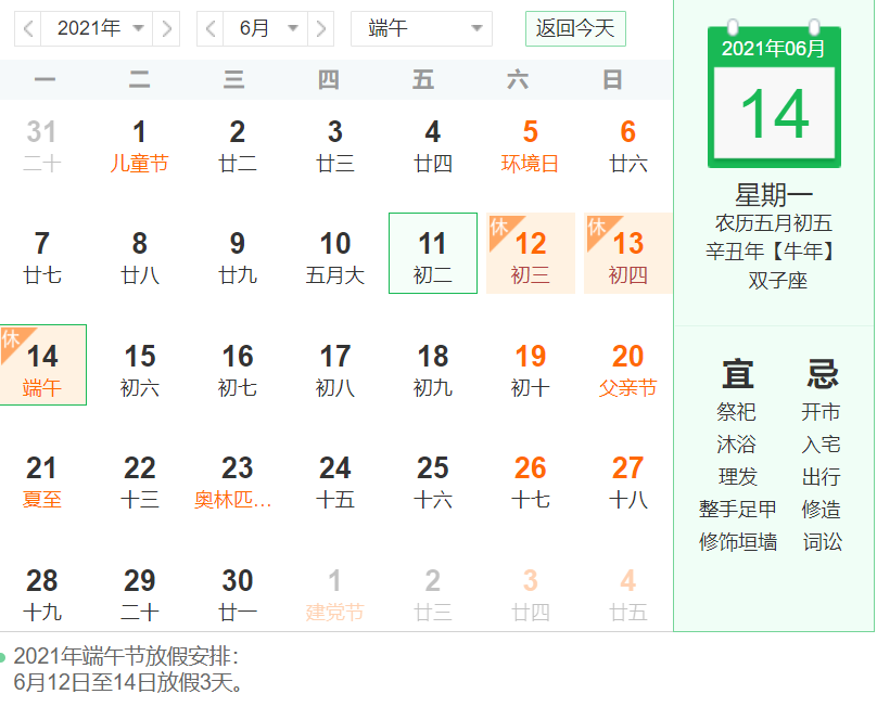 端午節(jié)將至,根據(jù)國務(wù)院節(jié)假日放假規(guī)定,并考慮公司的實際情況,公司將2021年端午放假做以下安排,具體明細(xì)如下: